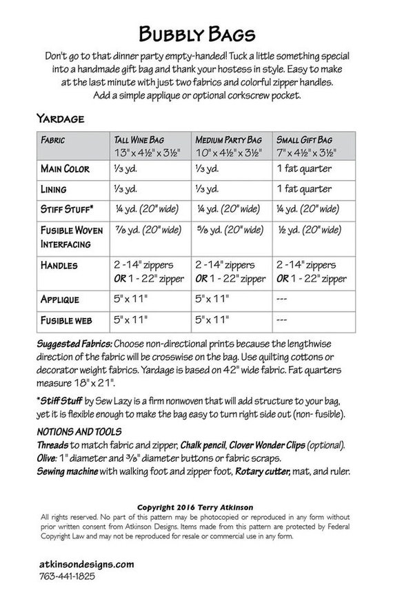 Bubbly Wine Bags Sewing And Quilting Pattern From Atkinson Etsy